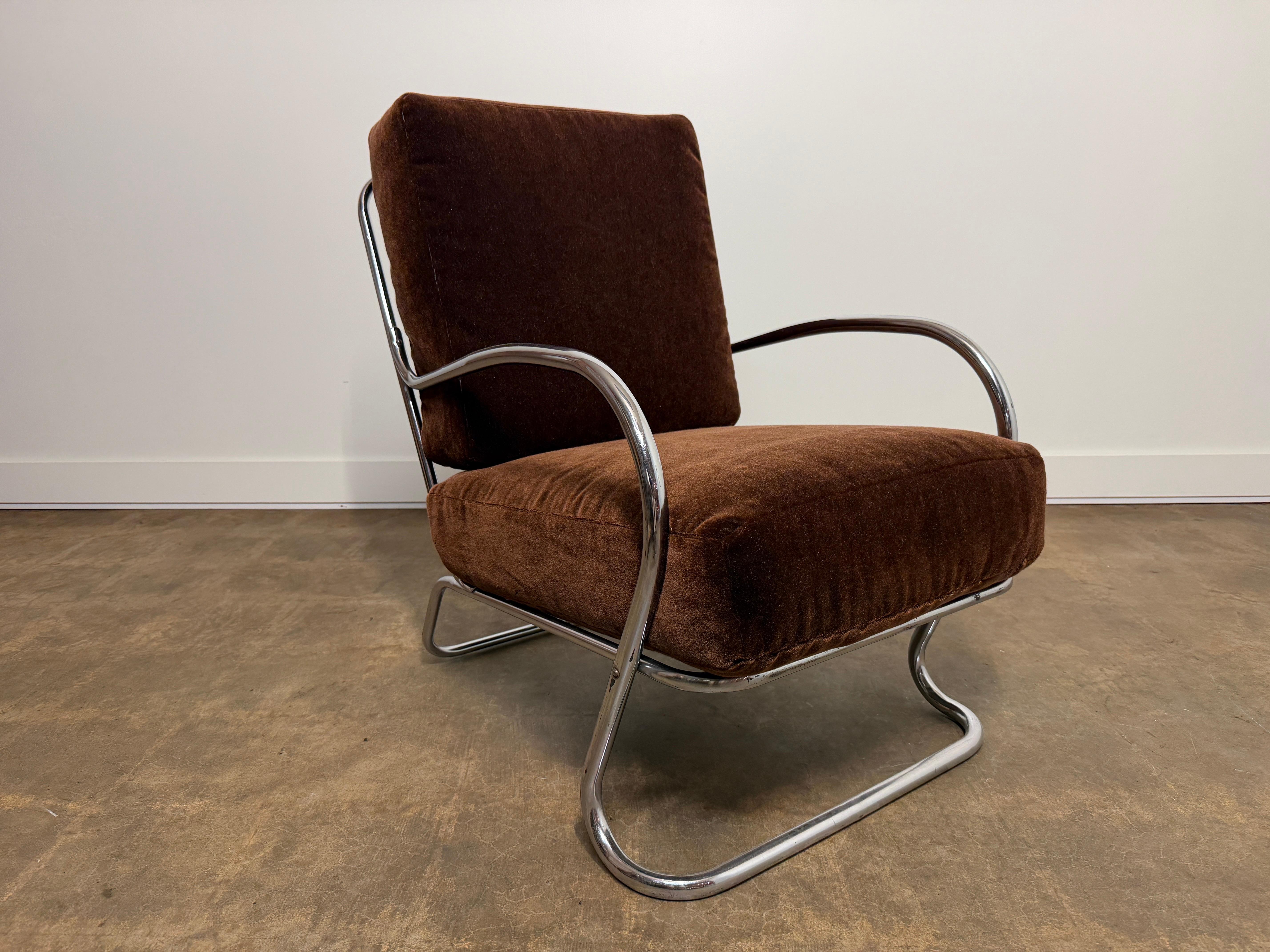 Art Deco "Steamer" Lounge/Tagesbett aus verchromtem Stahl und Samt von Kem Weber für Lloyd