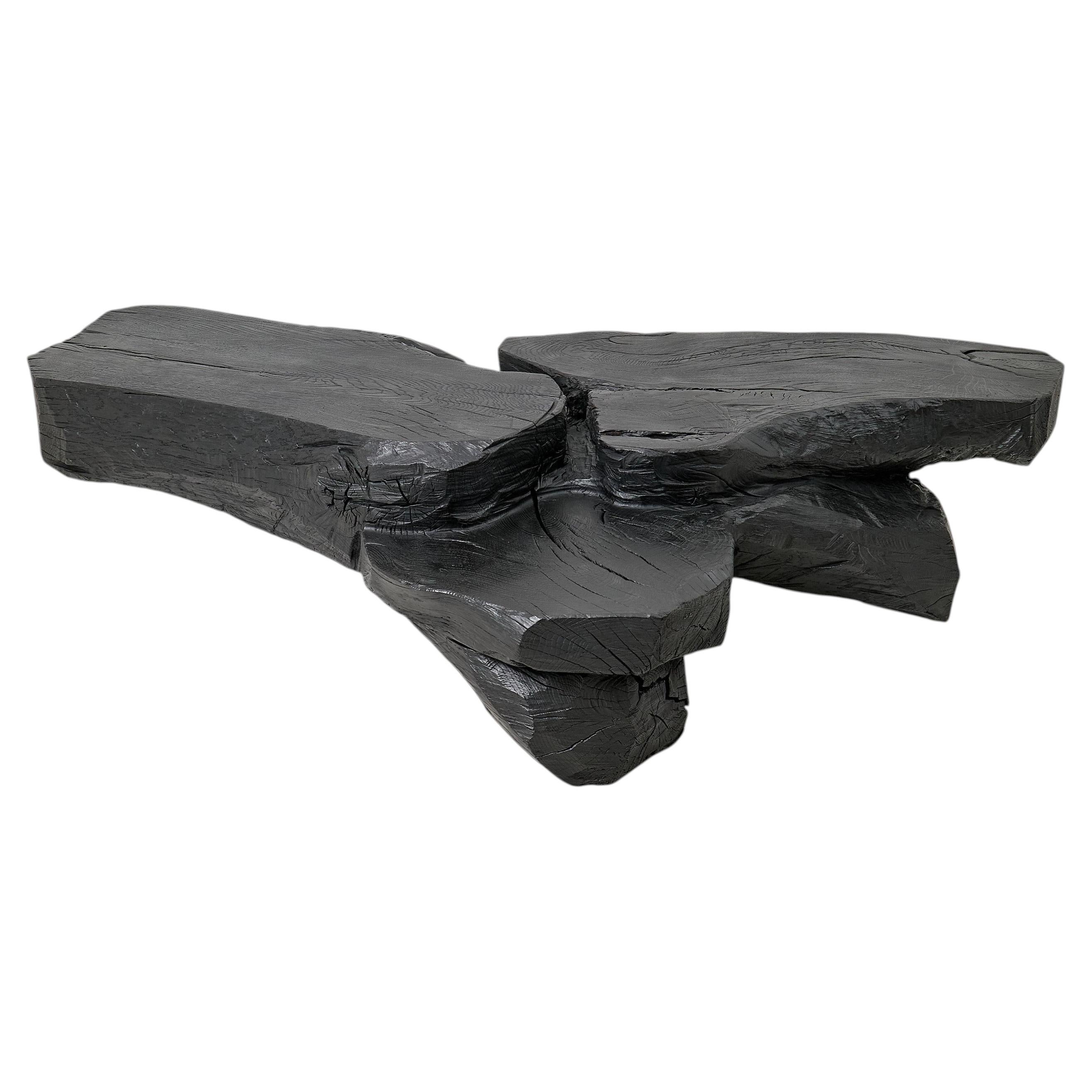 Skulpturaler Couchtisch, Rustikal, Gebranntes Schwarzes Holz, Geschnitzt, Handgemacht, Logniture