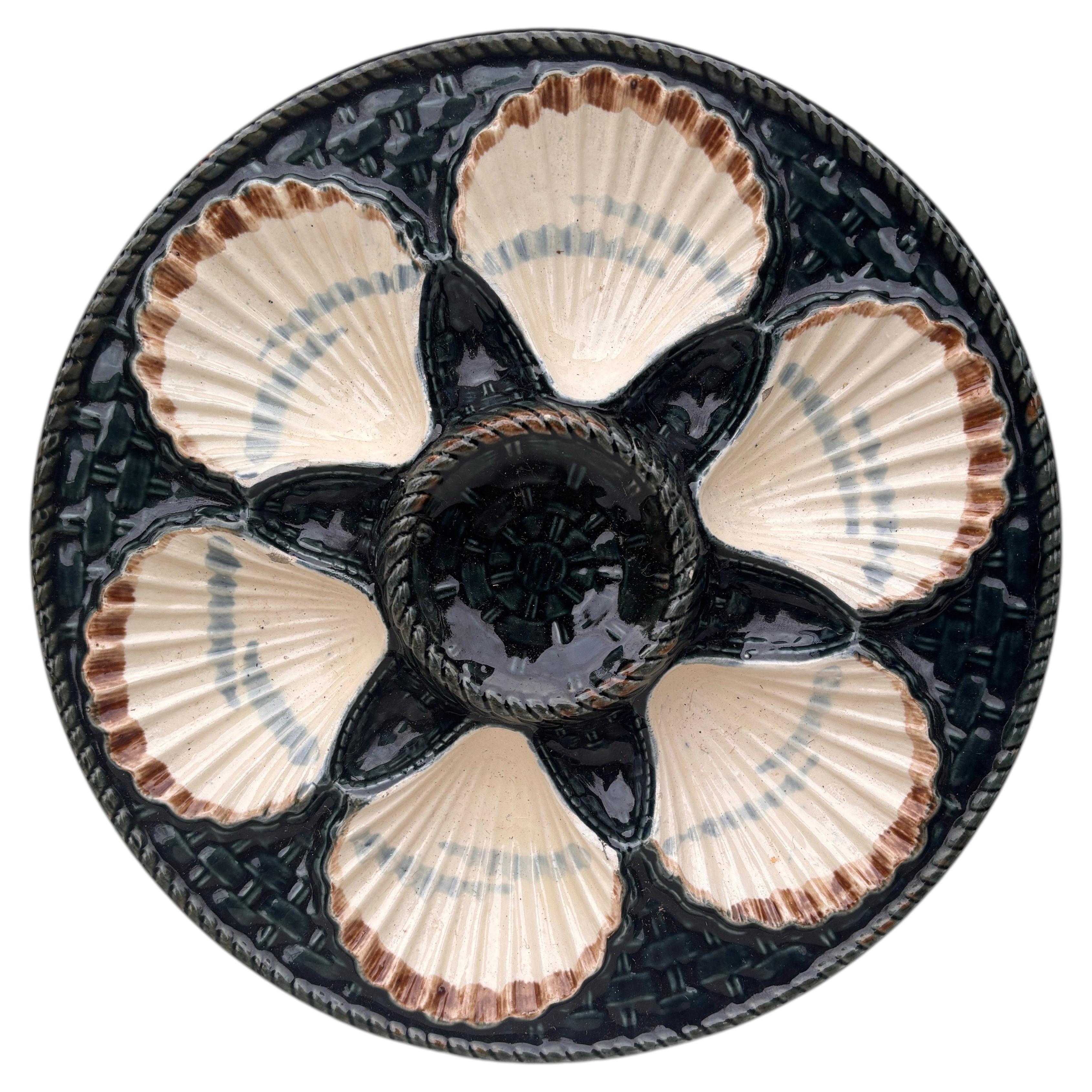 Satz von 4 Austern-Tellern - Majolika, 19. Jahrhundert - Grüne, weiße und braune Glasur