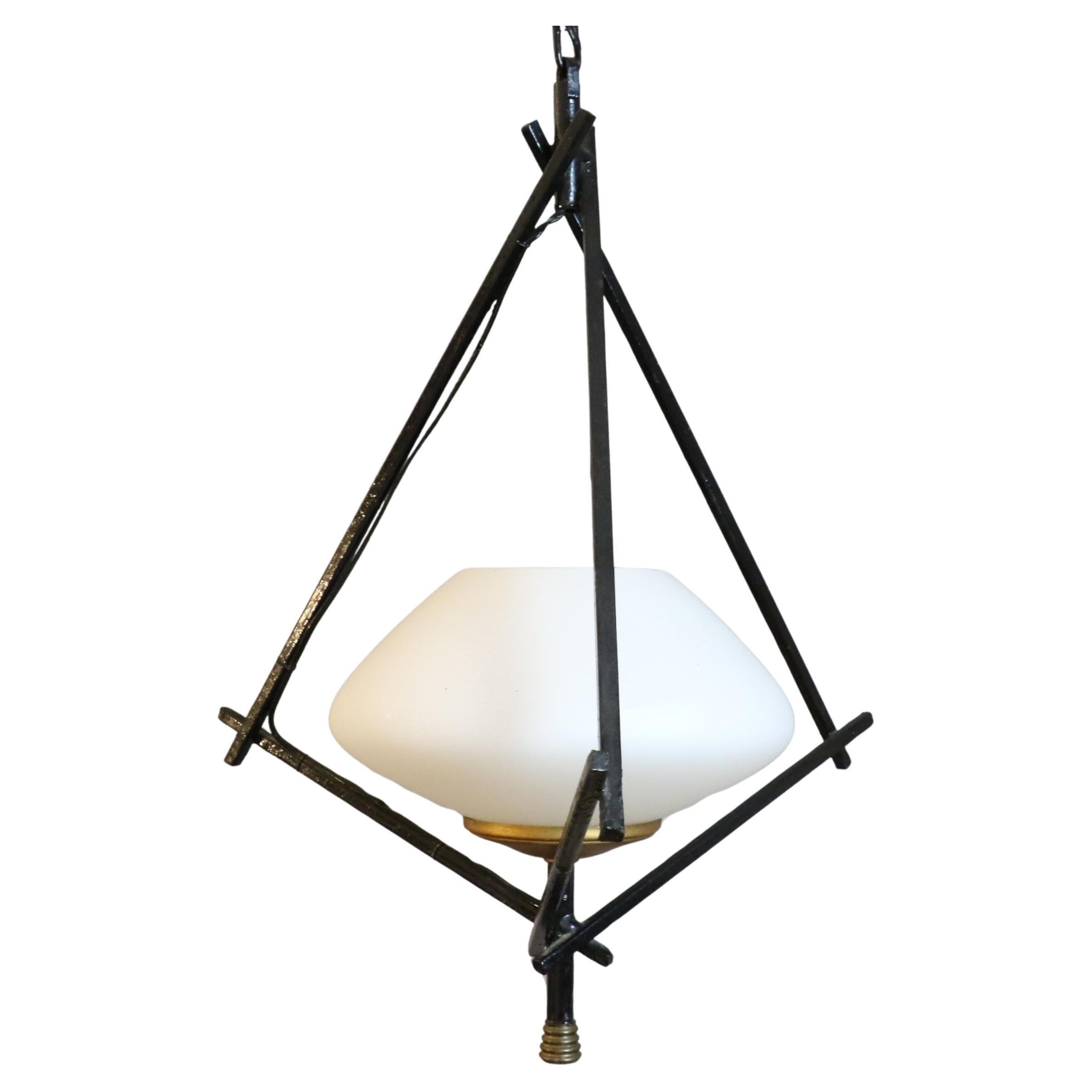 Diese elegante Pendelleuchte, die von Maison Lunel herausgegeben wurde, verkörpert die raffinierte Ästhetik des Designs der 1950er Jahre. Seine Strukt...