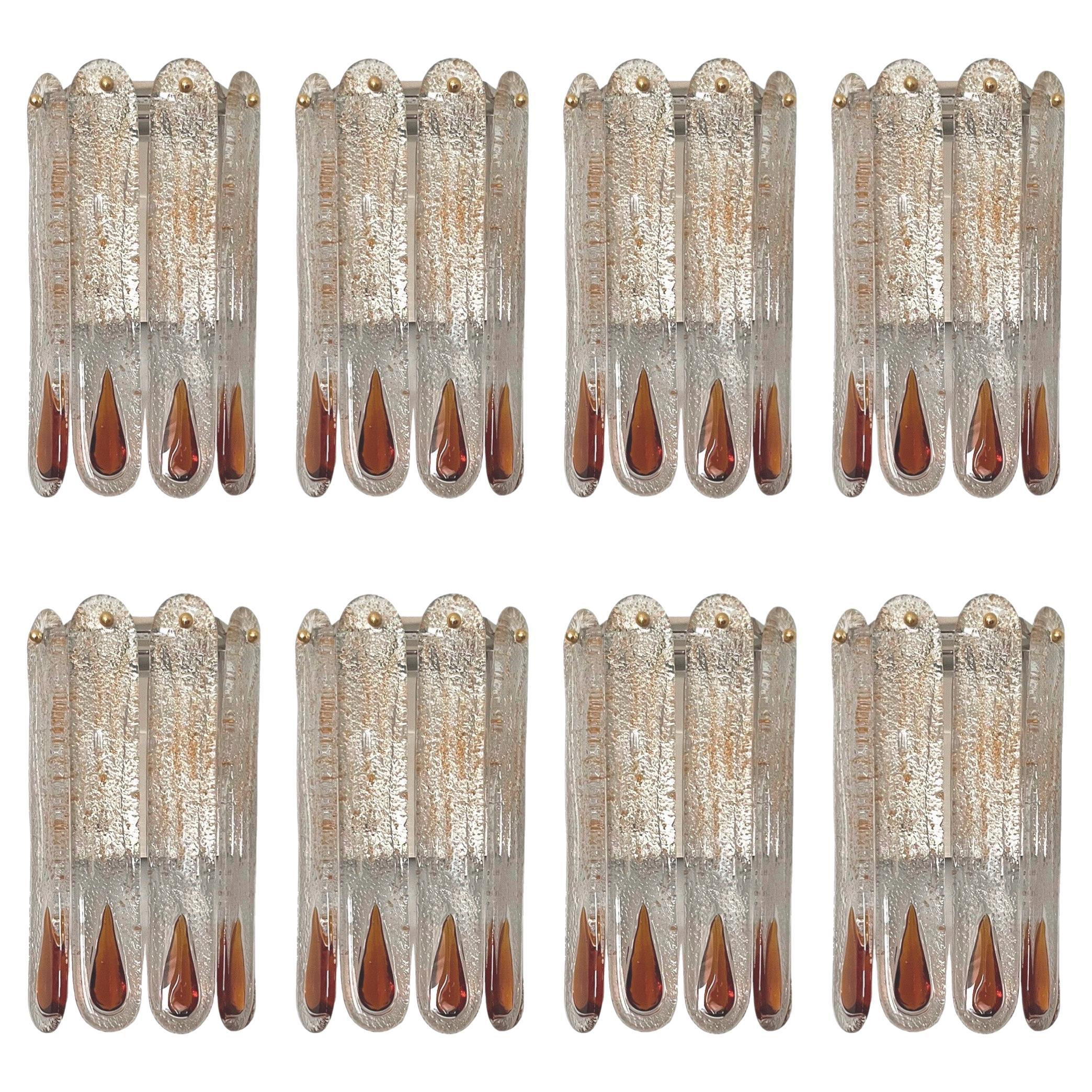 Marvelous, atemberaubende und lange italienische Satz von drei klaren Bernstein Murano Glas Wandleuchten aus 1970er Jahren. Diese Leuchten wurden in den 1970er Jahren in Italien für ...