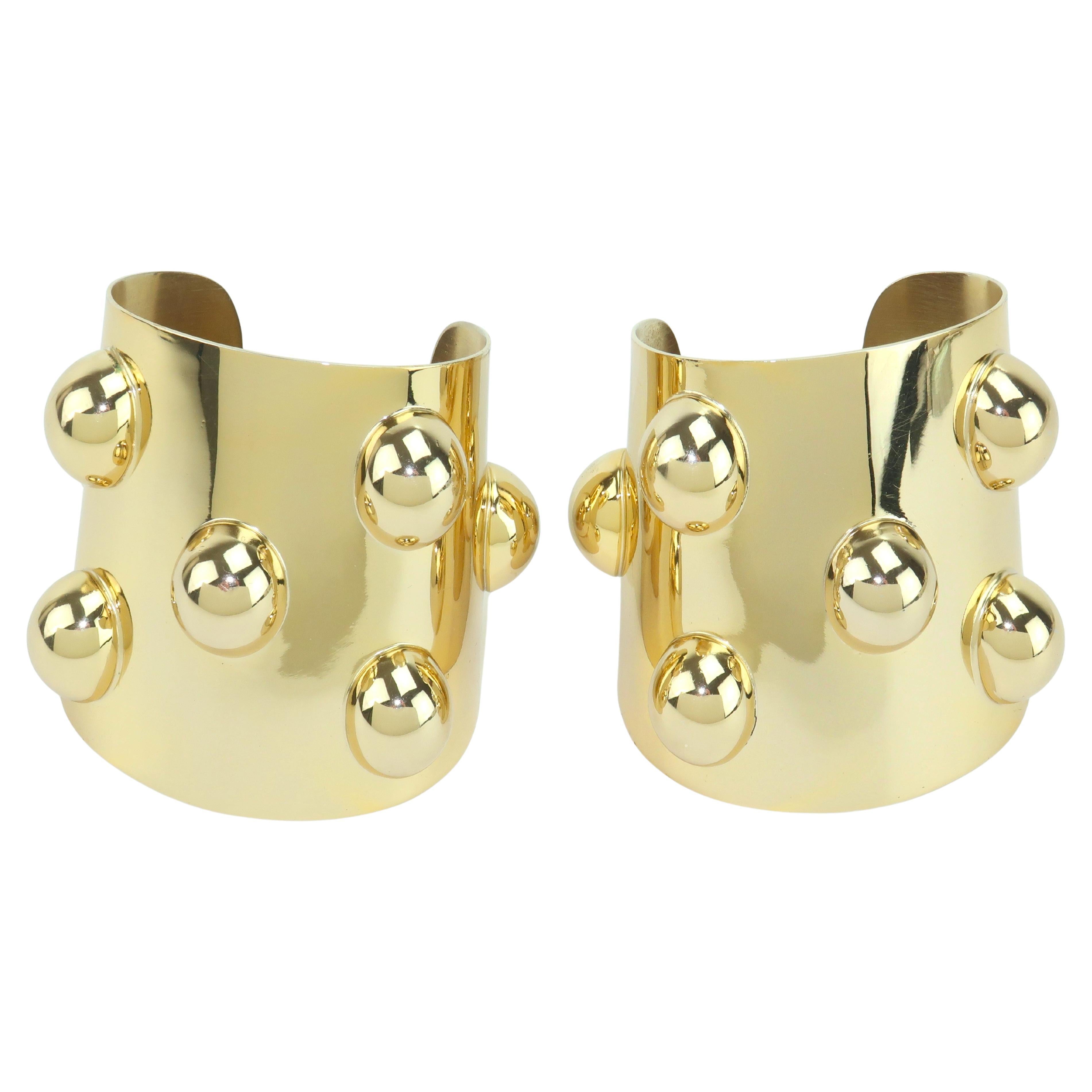 Paar NAPIER Goldfarbene Metallknopf-Armbänder, 1960er Jahre