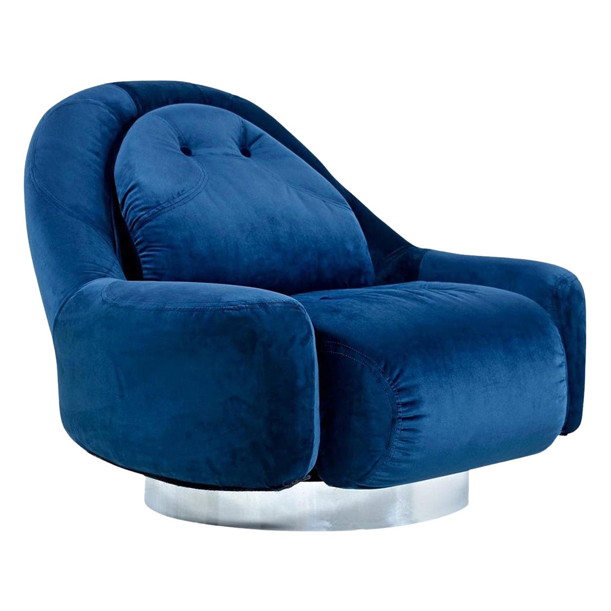 Verchromter Dreh-Loungesessel im Vintage-Stil von Leon Rosen für Pace