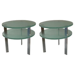 Ein Paar postmoderne Tische mit Glas & Aluminiumbeinen Entworfen von Peter Coan für Pace