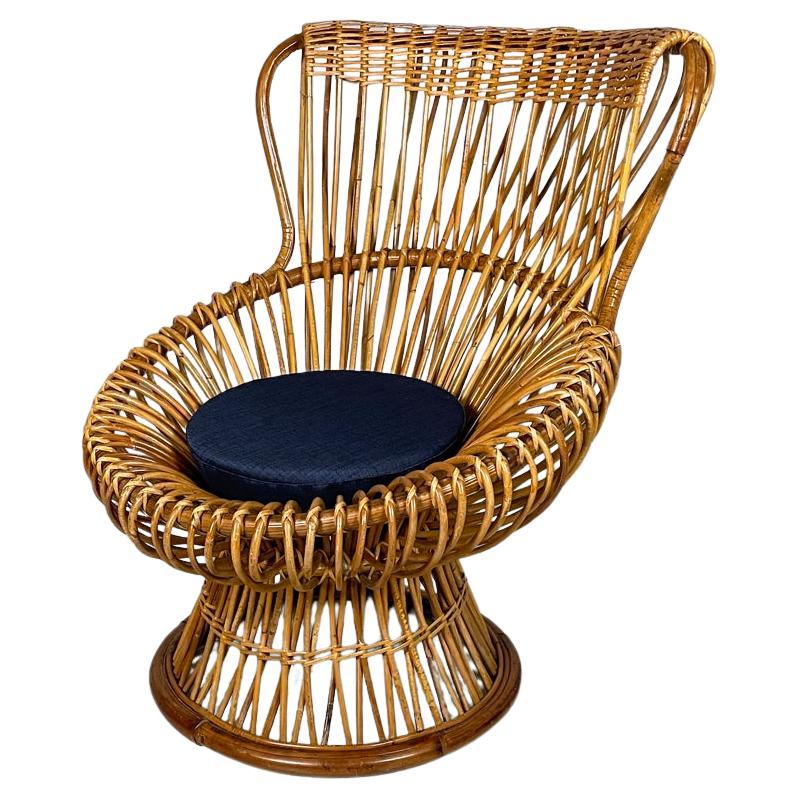 Italienischer Vintage Tito Agnoli B4 Rattan-Bambus-Sessel oder Lounge Chair, 1970er Jahre