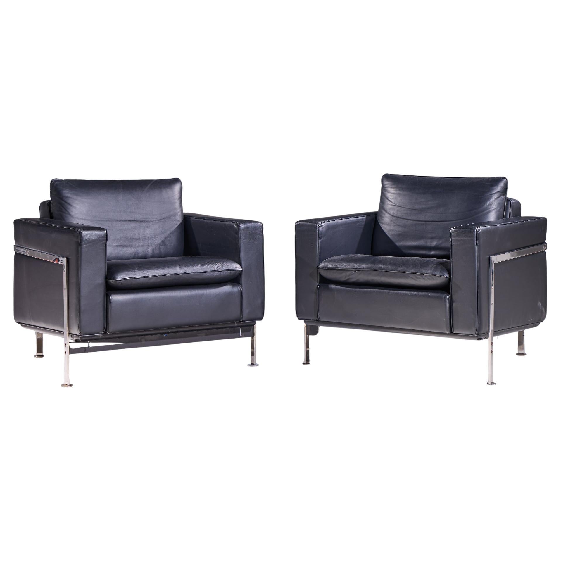 Robert Haussmann für De Sede, "Unesco" Ess- oder Konferenzstühle, Modell "RH-304", Leder, verchromter Stahl, Schweiz, 1957 Diese von Robert Haussmann entworfenen Freischwinger wurd...