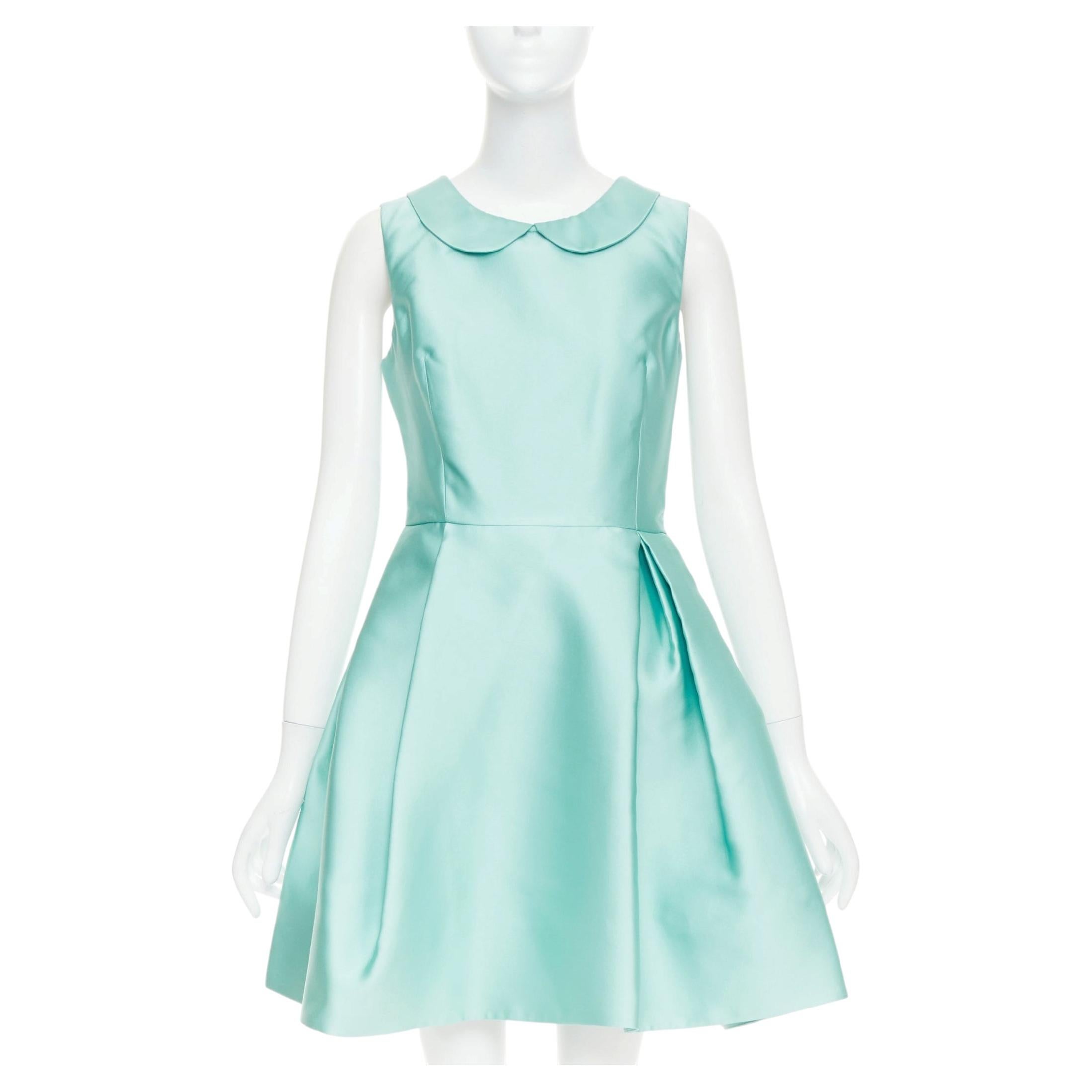 ROCHAS RCA421A mintgrünes Seidensatin-Skaterkleid mit Petermännchen-Kragen IT42 M