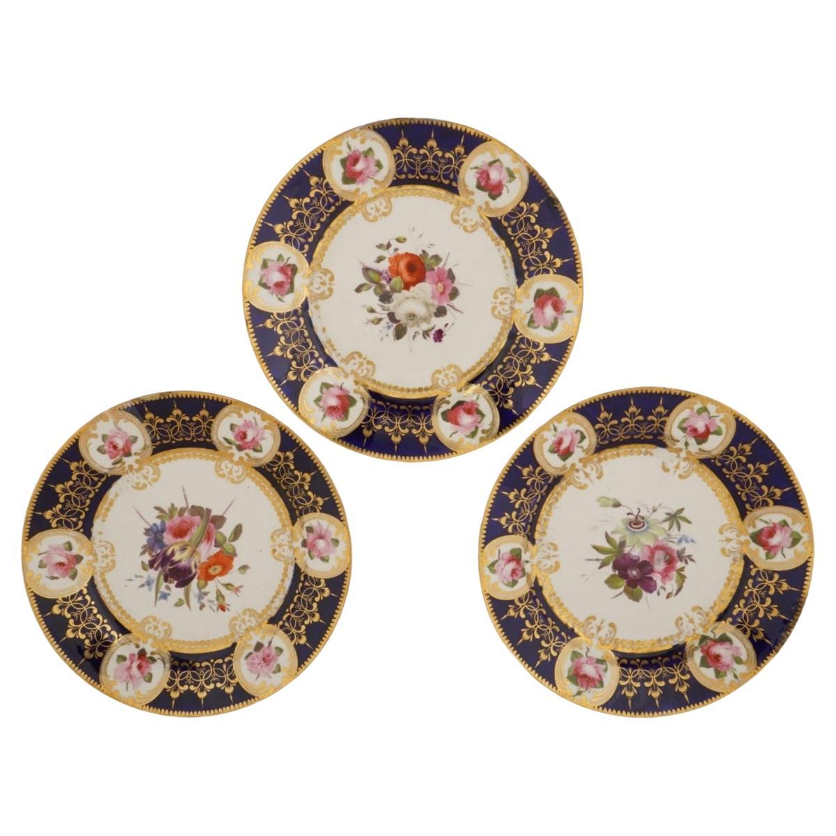 Set von 8 antiken Worcester-Porzellan-Schranktellern mit Emaille-Blumen aus Worcester