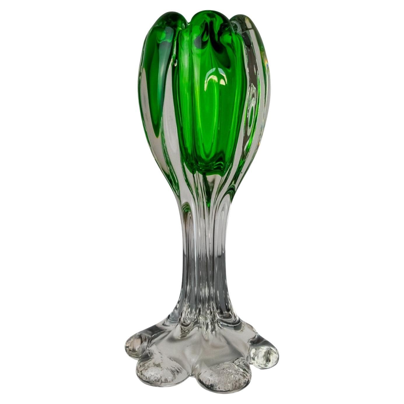 Seltene Sommerso Vase aus grünem, gelbem und klarem Blockglas von Flavio Poli, 1960er Jahre
