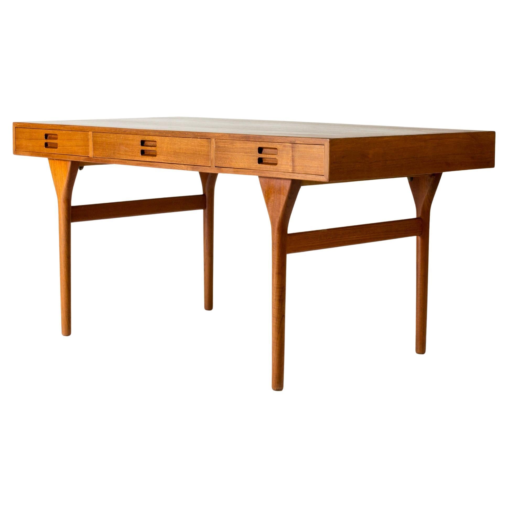 Auffälliger Schreibtisch von Nanna Ditzel, gefertigt aus schönem Teakholz mit klaren Linien und coolen Details. Erstaunliche, minimalistische Silhouette.