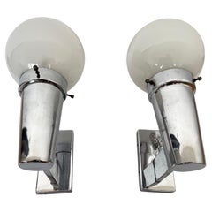 Zwei italienische Wandleuchten aus den 1950er Jahren, die sich durch klare Linien und ausgewogene Proportionen auszeichnen, wie sie für das moderne Design dieser Zeit typisch sind. J...