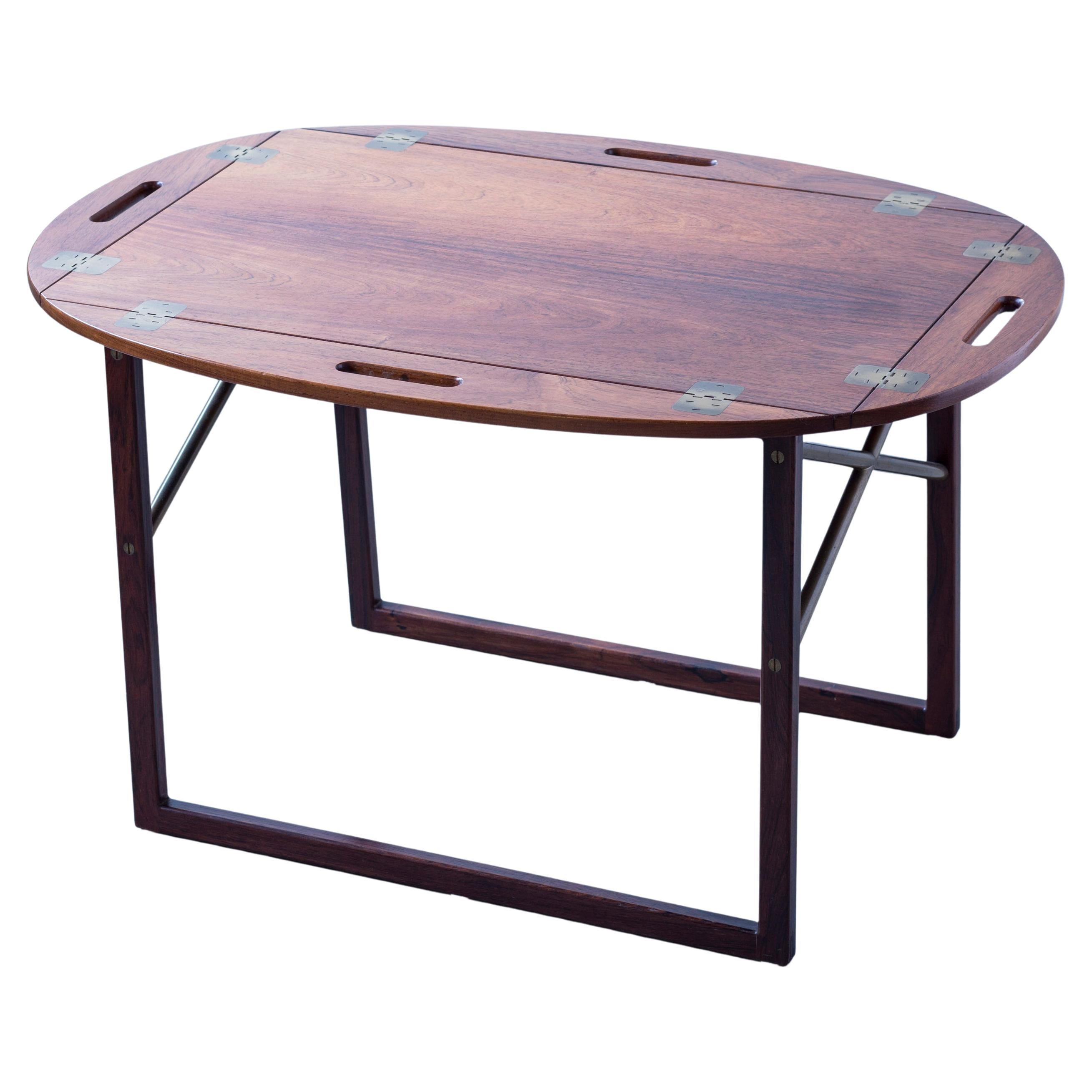 Tisch aus Rosenholz und Messing mit Tablett oder Butlers-Tisch von Svend Langkilde für Illums Bolighus