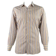 TURNBULL & ASSER Vintage Größe L Blau-Marine-Weiß gestreiftes Baumwollhemd mit langen Ärmeln