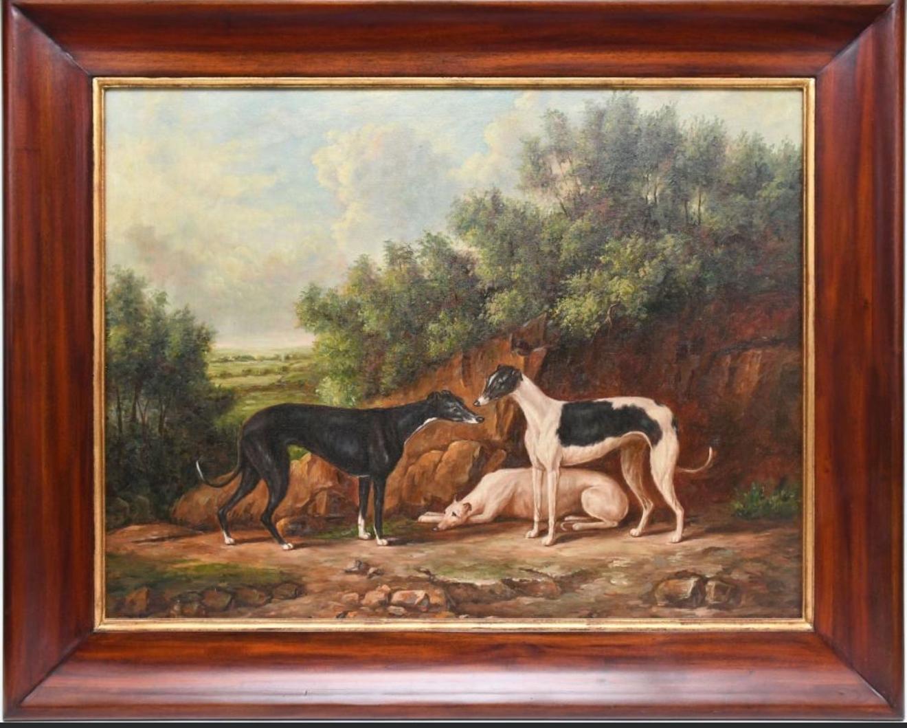 Vintage Realistische Landschaft mit Pferd und Hund Gerahmtes Ölgemälde
