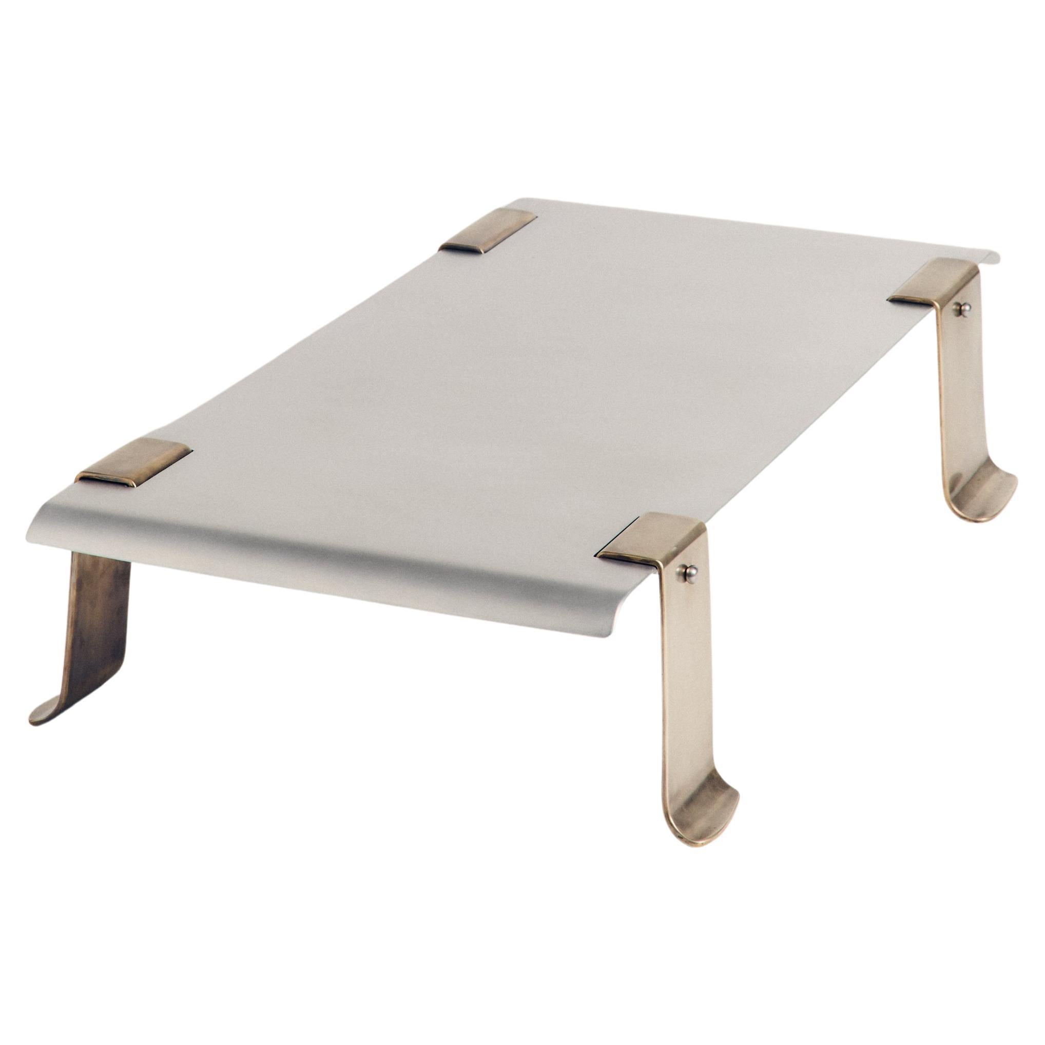 Dieser niedrige Tisch verfügt über ein einzigartiges, tränenförmiges Metallgestell, das in vier luxuriösen Metallic-Lackierungen erhältlich ist: Bronze, Gold, Silber und Dunkelsilber...