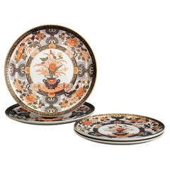Ein Herr mit langem, wallendem Bart sitzt in Brokat und Stoff auf einem Stuhl mit hufeisenförmiger Rückenlehne aus luxuriösem geschnitztem Lack. Hinter ihm auf der rechten Seite begl...