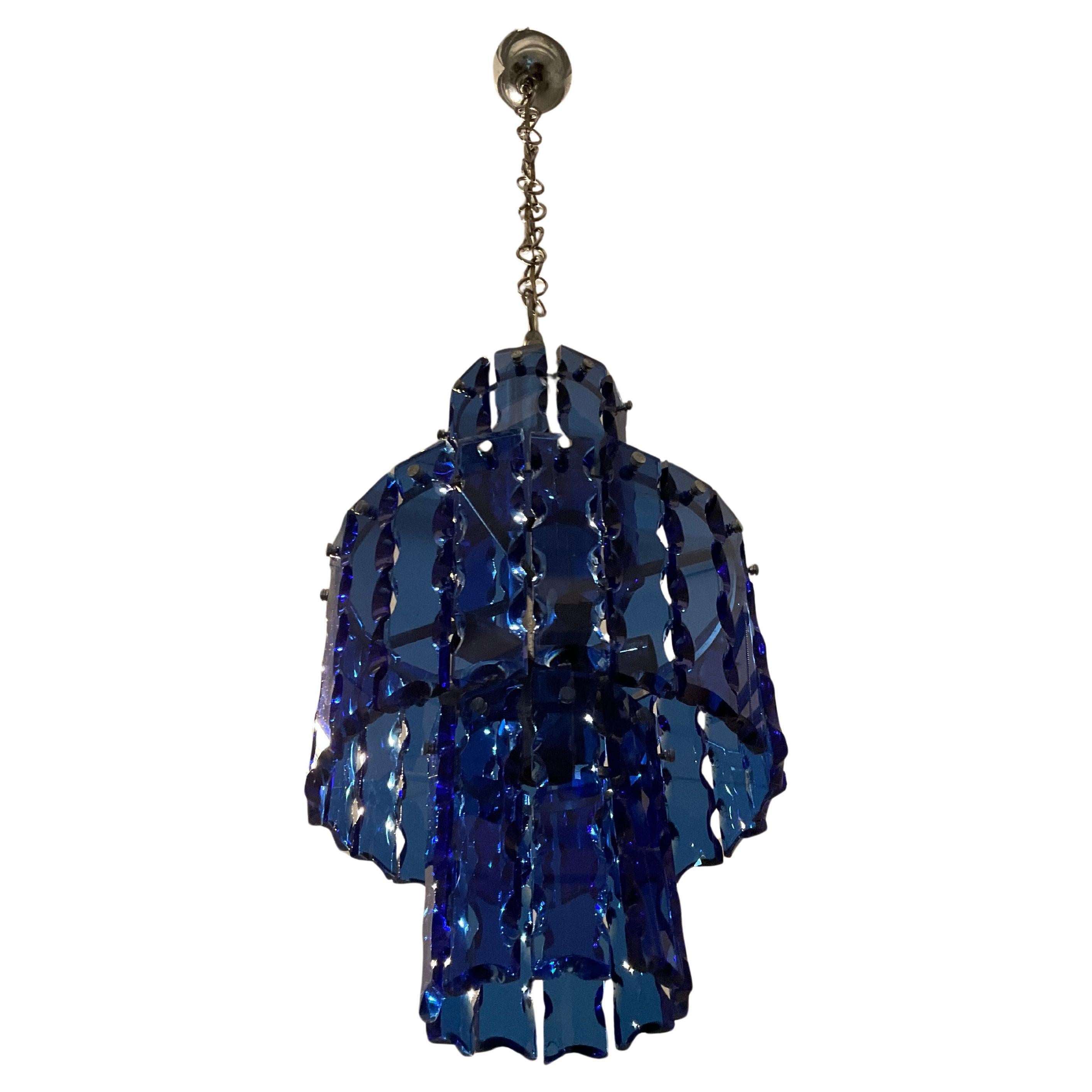 Kronleuchter aus dickem geschliffenem Glas, hergestellt von Zero Quattro in den 70er Jahren, in gutem Vintage-Zustand mit normalen Alters- und Gebrauchsspuren; einige kleine Chips in...