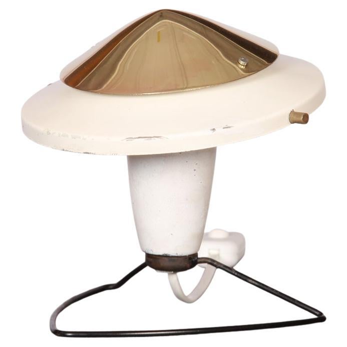 Kleine Vintage-Lampe, hergestellt von Zukov um 1950. Diese Lampe aus der Tschechischen Republik ist aus Messing und weiß lackiertem Metall gefertigt. Es ist in Vintage-Zustand. Die e...