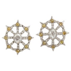 Antike georgische Diamantohrringe mit Rosenschliff in 14k Gold mit Silberüberzug, niederländisch