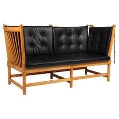 Børge Mogensen Zweisitziges Sofa, Tremmesofa Modell 1789, Buche und Leder