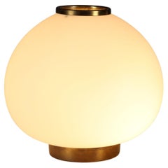 Elegante Tischleuchte aus Messing mit kugelförmigem Opalglasschirm.