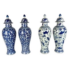 Chinesisch Blau und Weiß Porzellan bedeckt Vasen Satz von vier handgemalten