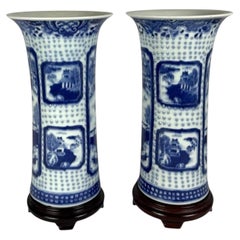 Chinesisch Blau und Weiß Porzellan Mantel Vasen Pair Landschaft