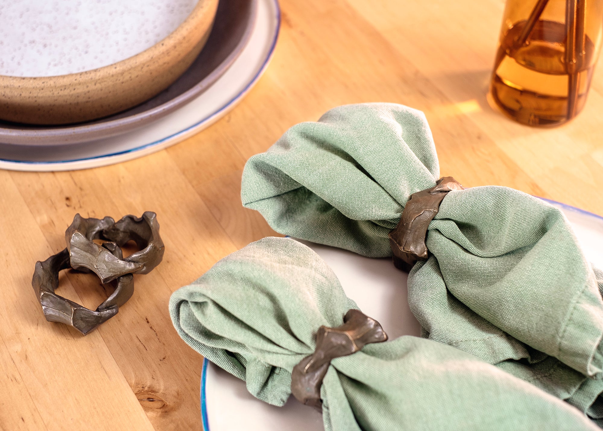 Serviettenringe aus Bronzeguss mit Silbernitratpatina, handgefertigt - 4er-Set