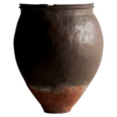 Dieses große antike japanische Keramikgefäß verkörpert eine starke skulpturale Präsenz, die von Erde, Feuer und dem Lauf der Zeit geprägt ist.