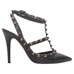 Schwarze spitz zulaufende Lederabsätze mit Knöchelriemen von Valentino. Durchgehend mit Rockstud-Verzierungen versehen. Schnallenverschlüsse an den Knöchelriemen. 4" Absatzhöhe.