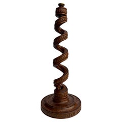 Dieser Lampensockel ist ein eindrucksvolles Beispiel für die elsässische Holzdekoration und zeigt eine dramatische offene Gerstensäule, die auf einem klassischen runden Sockel steht....