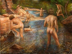 Befreiung - Nacktbaden im Fluss - Originalgemälde von Bruno Surdo