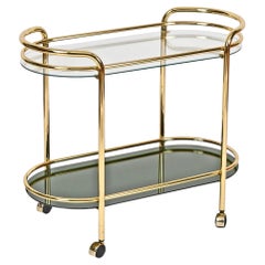 Italienischer Servierwagen aus der Mitte des Jahrhunderts aus vergoldetem Metall und grünem Spiegelglas, 1970er Jahre