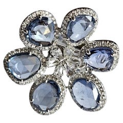 Diamant, Blauer Saphir, 18-Karat-Gold, Weißgold