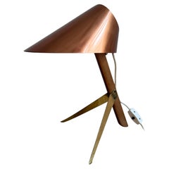 Sehr schöne, seltene und wunderbare patinierte Tischlampe. Kupfer eloxierter Aluminiumschirm.
