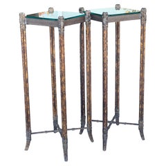 Paar Faux gebrannten Bambus hohe Tische Ständer