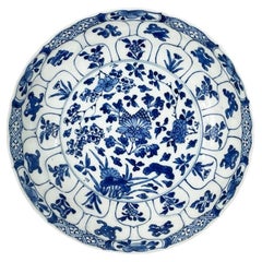 Chinesischer weißer und blauer Porzellanteller, Kangxi 1662-1722