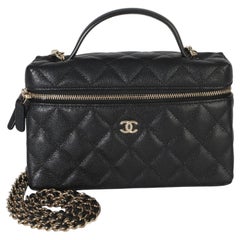 Chanel Schwarz gesteppt Kaviar Top Handle Slim Vanity mit Kette