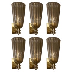 Eleganter und skulpturaler Satz von sechs italienischen Glaswandleuchtern in der Form Campana aus den 1980er Jahren.