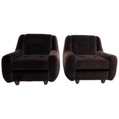 Ein feines Paar italienischer Loungesessel aus schokoladenbraunem Samt
