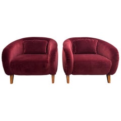 Paar italienische Clubsessel aus den 1960er Jahren, neu gepolstert mit feinem rubinrotem Samt. Zusätzliche Kissen sind im Lieferumfang enthalten.
