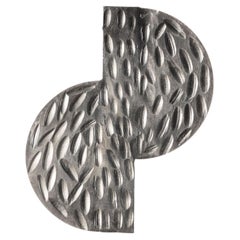 Diese Wandleuchte ist ein Meisterwerk des kreativen Ausdrucks und geht über die reine Beleuchtung hinaus. Er besteht aus zwei sich überlappenden Halbkreisen in einem glatten, grauen ...