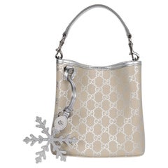 Merkmale: Tan GG Monogram beschichtetes Gewebe, silberne GG und silberne Lederbesätze, silberne Hardware, silberner Schulterri...