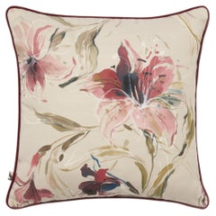 Handbemaltes Blumenkissen mit burgunderroter Paspelierung