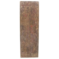 Antike chinesische Horizontaltafel aus Holz mit Spuren traditioneller Kalligraphie. Die Oberfläche zeigt deutliche Abnutzungserscheinungen und Patina, die den Lauf der Zeit widerspie...