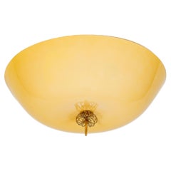 Paavo Tynell Modell 2098 R in seiner größeren Version. Deckenlampe in Opalin mit Messingdekoration, die Lampe ist Stempel vom Herausgeber Idman. Abmessungen: 60 cm Durchmesser.