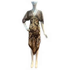 1980er Ann Lawrence Vintage Metallic Gold und Schwarz Perlen Fransen Abendkleid