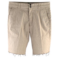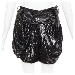 Schwarze Woll-Mini-Shorts mit Nadelstreifen-Muster. Rayon Futter. Tasche auf beiden Seiten + 2 Taschen auf der Rückseite mit Knopf und Knopflochverschluss. Gürtel-Schleife. Reißversc...