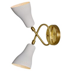 Zwei italienische Wandleuchten aus den 1950er Jahren aus Messing und massivem Opalglas, die die raffinierte Eleganz des Mid-Century Modern und des italienischen modernistischen Desig...