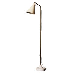 Angelo Lelii für Arredoluce, Stehleuchte, beschichtetes Aluminium und Messing, Messing, Marmor, Italien, Entwurf um 1954 Eine außergewöhnlich seltene Stehlampe, entworfen von dem b...